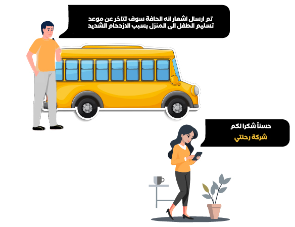 يبدأ التطبيق العمل عند بدء تحرك الحافلة، ليتم إعلام أولياء الأمور فورًا بانطلاق الحافلة.
